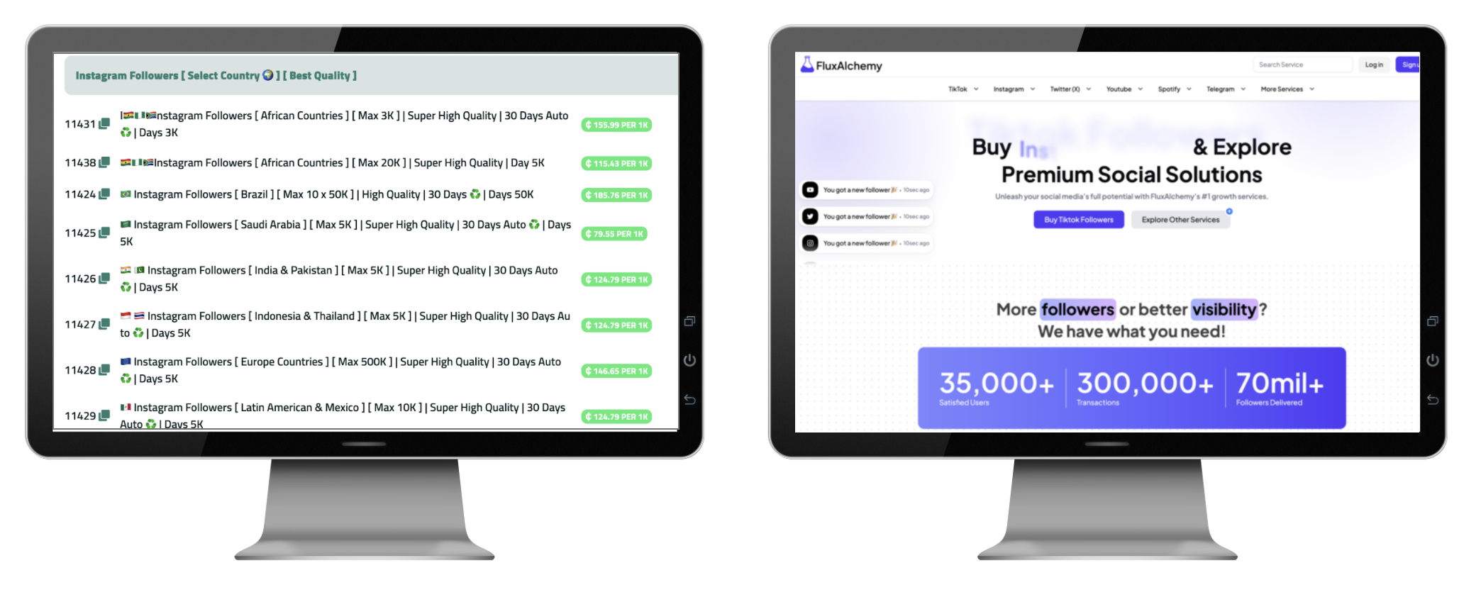 Sellers of social media indicators often offer services for a wide variety of platforms and regions.
